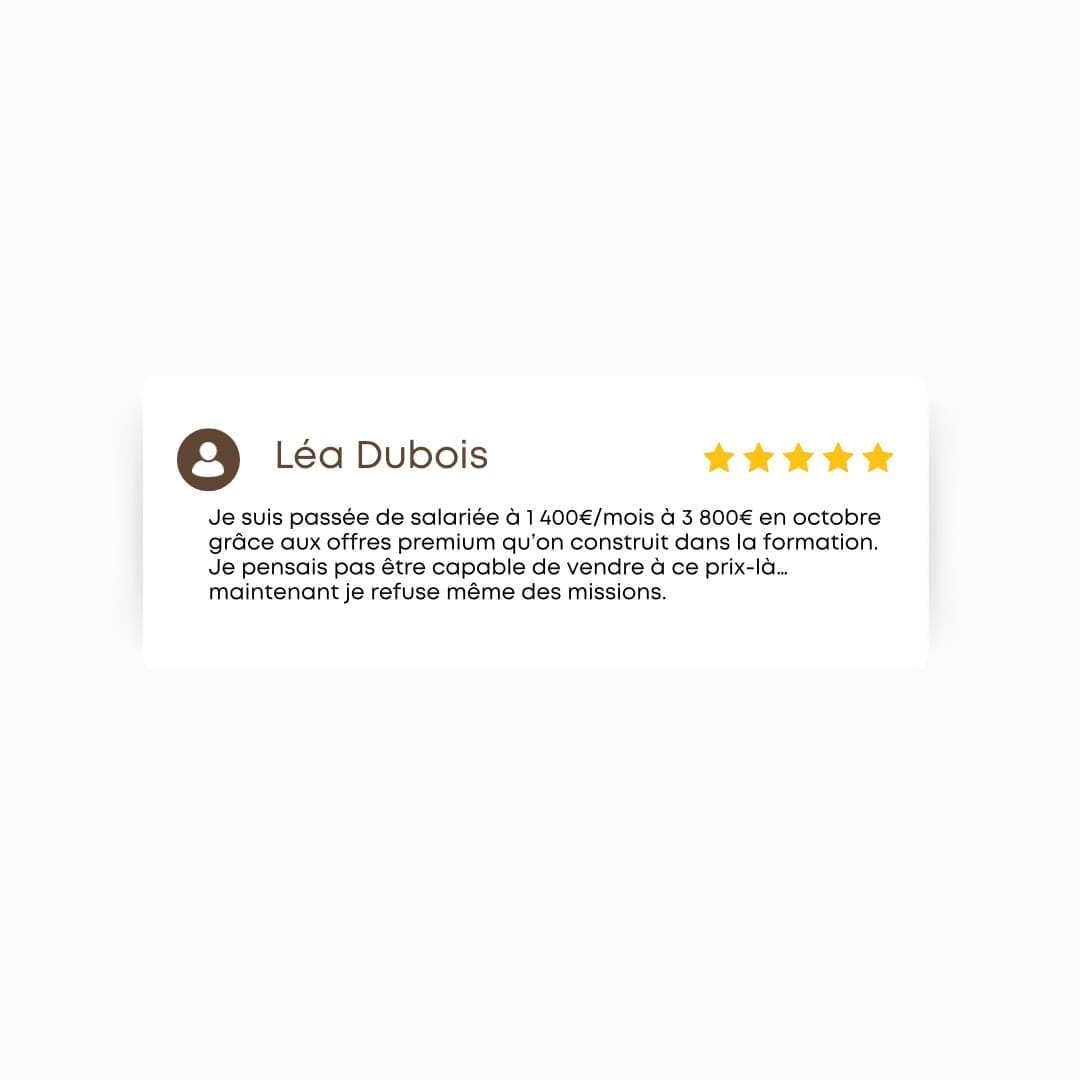 Une offre claire, différenciante et alignée avec ta valeur (finis les prestations mal payées et floues).