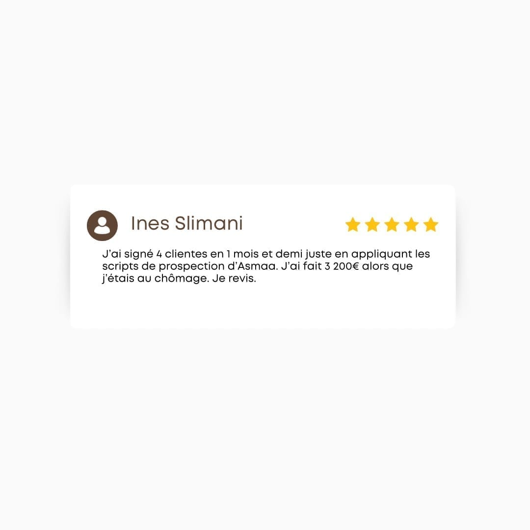 Tu apprends à prospecter efficacement, réussir tes appels, lever les objections et closer sans stress.