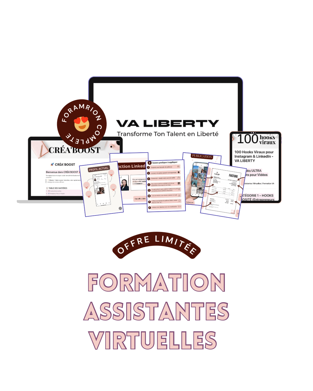 Un accompagnement complet qui mélange coaching individuel, sessions de groupe, et masterclass premium, pour te faire passer de “je débute” à assistante virtuelle premium confiante et rentable.